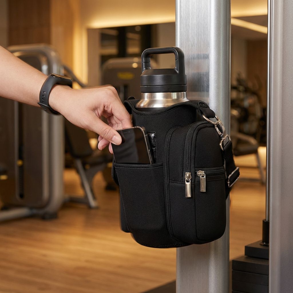 Con el Bolso Magnético para Gym guardas tu botella, celular, llaves y accesorios de forma segura y organizada. Se adhiere a superficies metálicas para que tengas todo a la mano mientras entrenas.